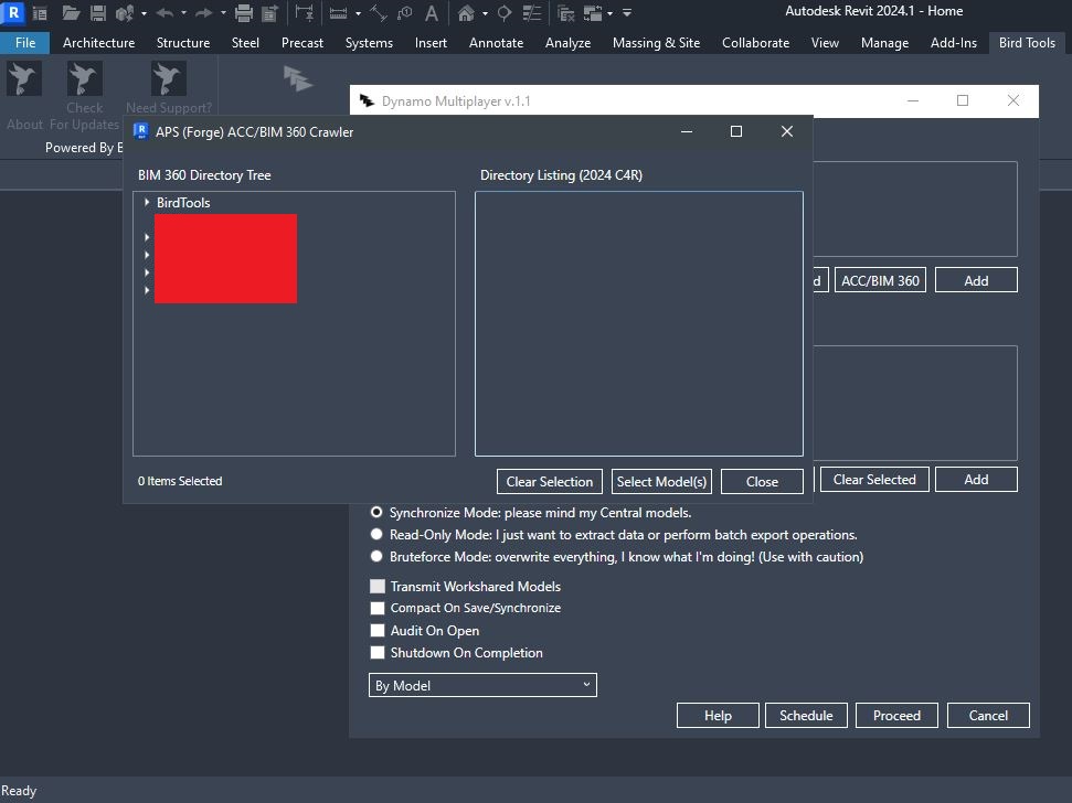 Not only that, Dynamo Multiplayer takes Revit add-ins to a new unprecedented level, as it’s probably the first free non-Autodesk Revit add-in ever to support Autodesk® BIM 360®/ACC models through Autodesk Platform Services (APS, formerly Forge): the tool can batch process BIM Collaborate Pro (a.k.a BIM 360 Design) workshared models as well by retrieving them through APS, batch controlling them through the Revit API, and processing them using Dynamo.