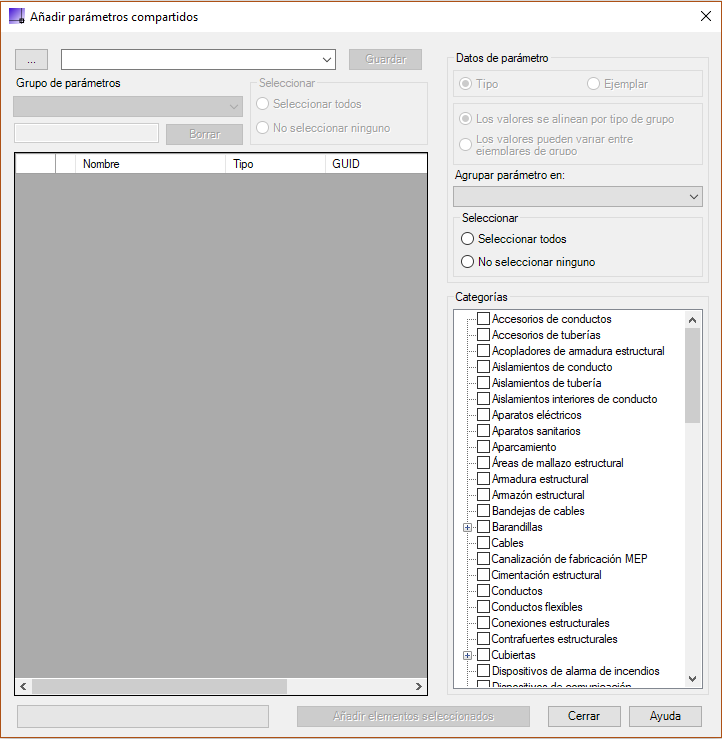 Esta aplicación le permite agregar múltiples parámetro compartido a un proyecto o plantilla. Permite agregar múltiples parámetro compartido a una familia, como un Parámetro compartido o Parámetro de familia.