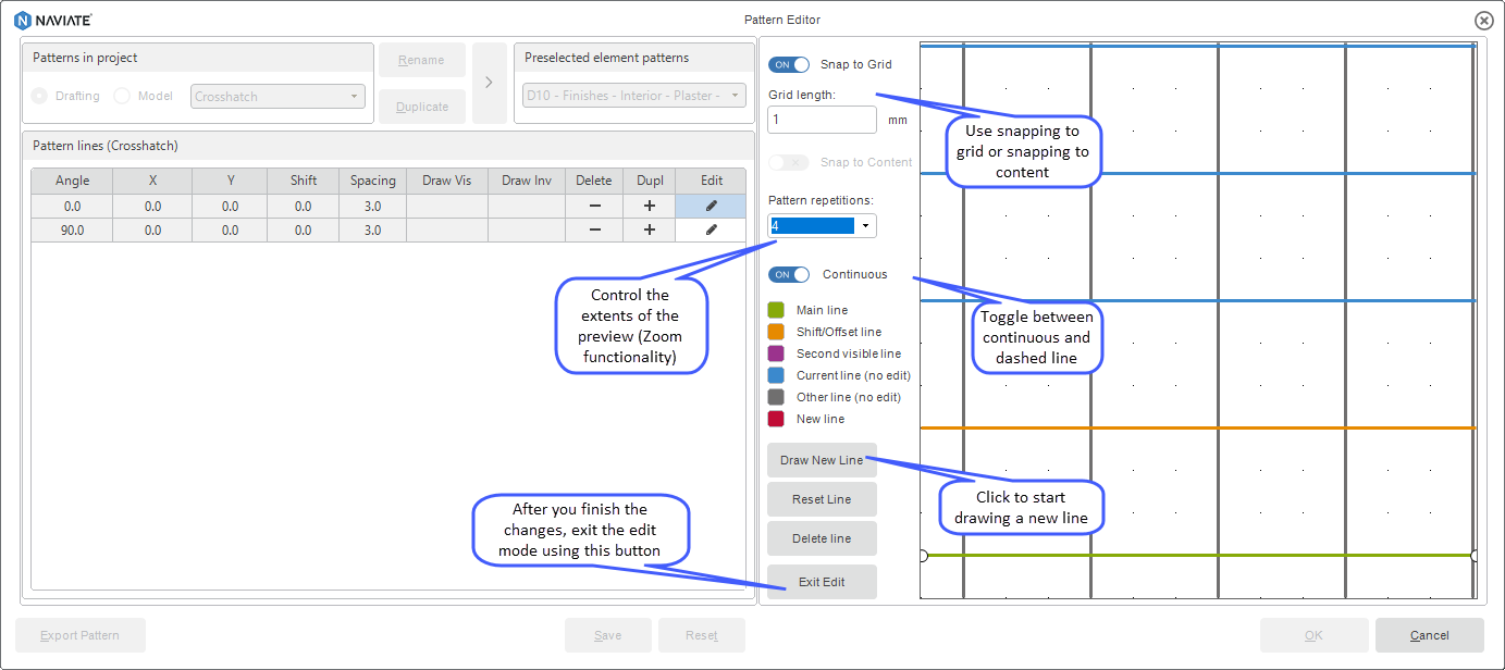 Editing patterns from within Revit is only possible with grids or single lines, and advanced editing requires time and knowledge of complicated .pat files or objects from AutoCAD. Pattern Editor lets you access and edit patterns easily. Patterns can be duplicated and applied to chosen objects with instant feedback.
