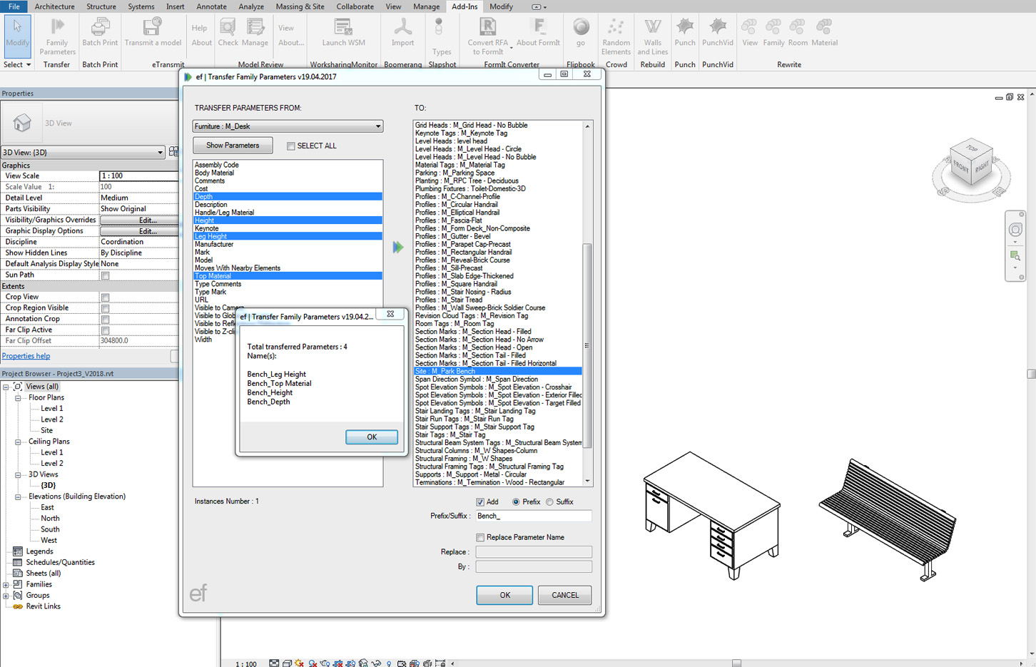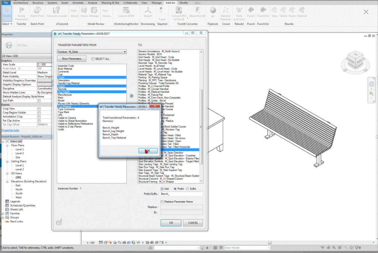 Whether you're working on a small project or managing a large-scale design, "Transfer Family Parameters" enhances productivity by automating repetitive tasks and ensuring consistency across family parameters. This tool is ideal for architects, engineers, and designers looking to streamline their workflow and focus on creative aspects rather than administrative tasks.