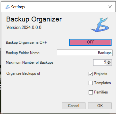 With this add-in installed, each time a backup file is created by Autodesk® Revit® it is automatically moved into a Backups folder in the same directory.