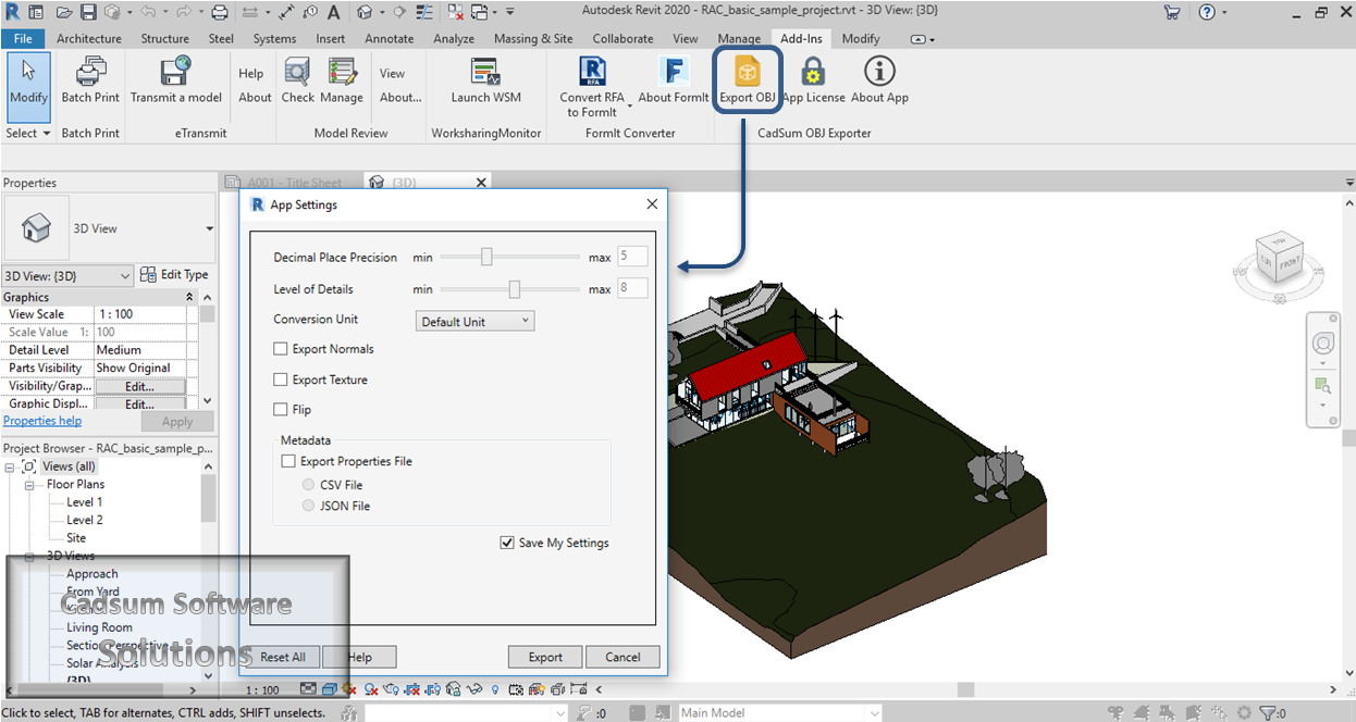Cadsum OBJ Exporter for Autodesk® Revit® - Paid