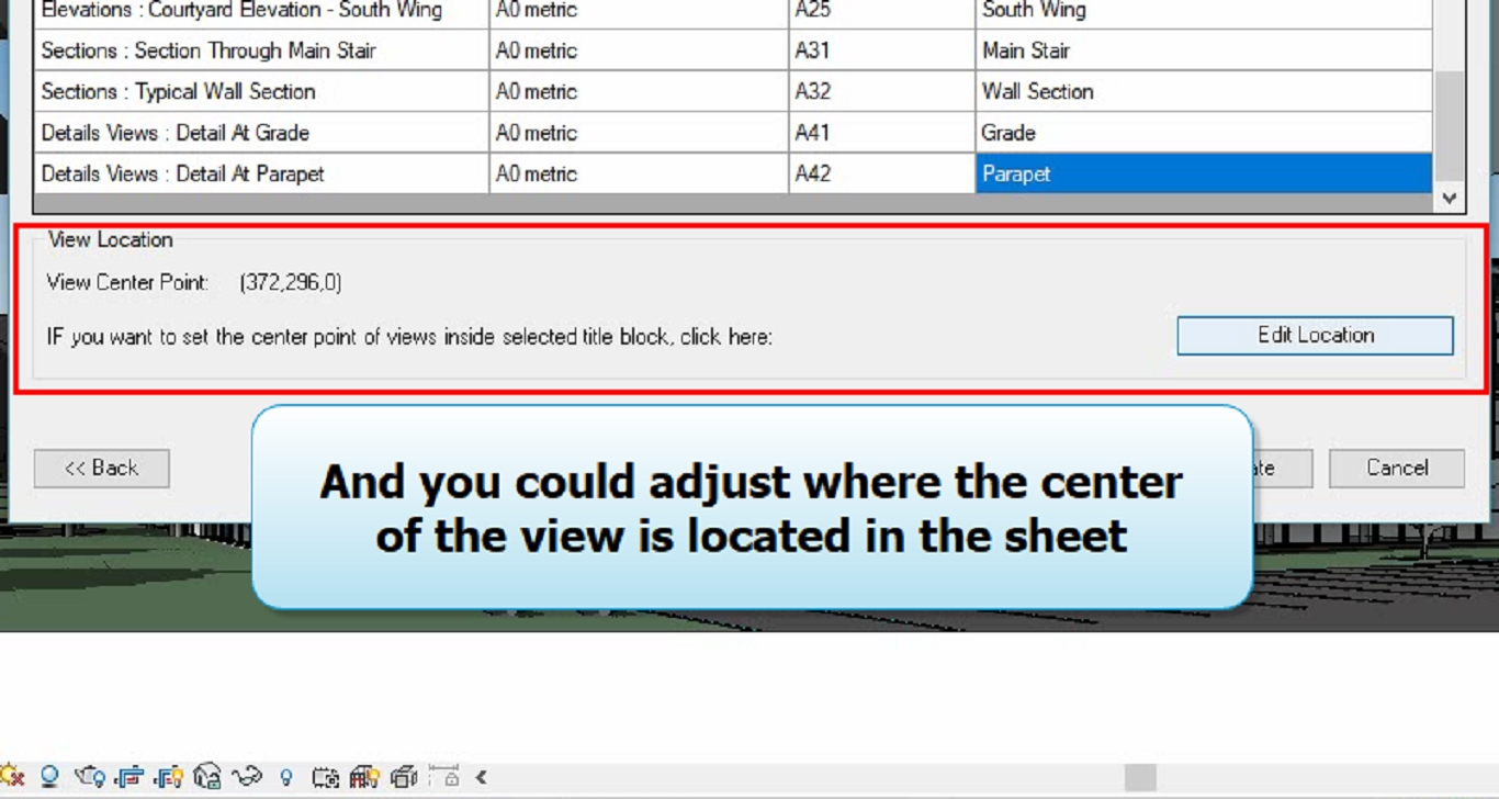 Also, you could set the location of the view inside its title block. This feature provides two options for you: