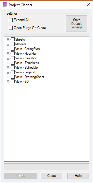 It also helps to remove information from a Revit Project/Template or Family and reduce the file size of models prior to being linked to projects or prior to sending projects to outside consultants. It can remove