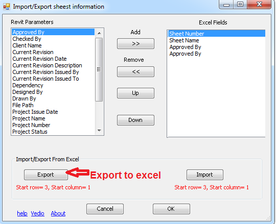 Note: Do not edit 'Sheet Number' after exporting the parameters to Excel.