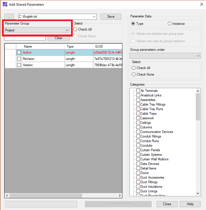 It also highlights parameters that already exist within the active document and obsolete parameters, which are not bound to a Category.