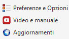 |   | Opzioni video e aggiornamenti | Questo gruppo di icone prevede la possibilità di configurare le opzioni del software, consultare il manuale e le video guide on line e infine di poter restare aggiornati sulle nuove versioni rese disponibili da MCS Software. |