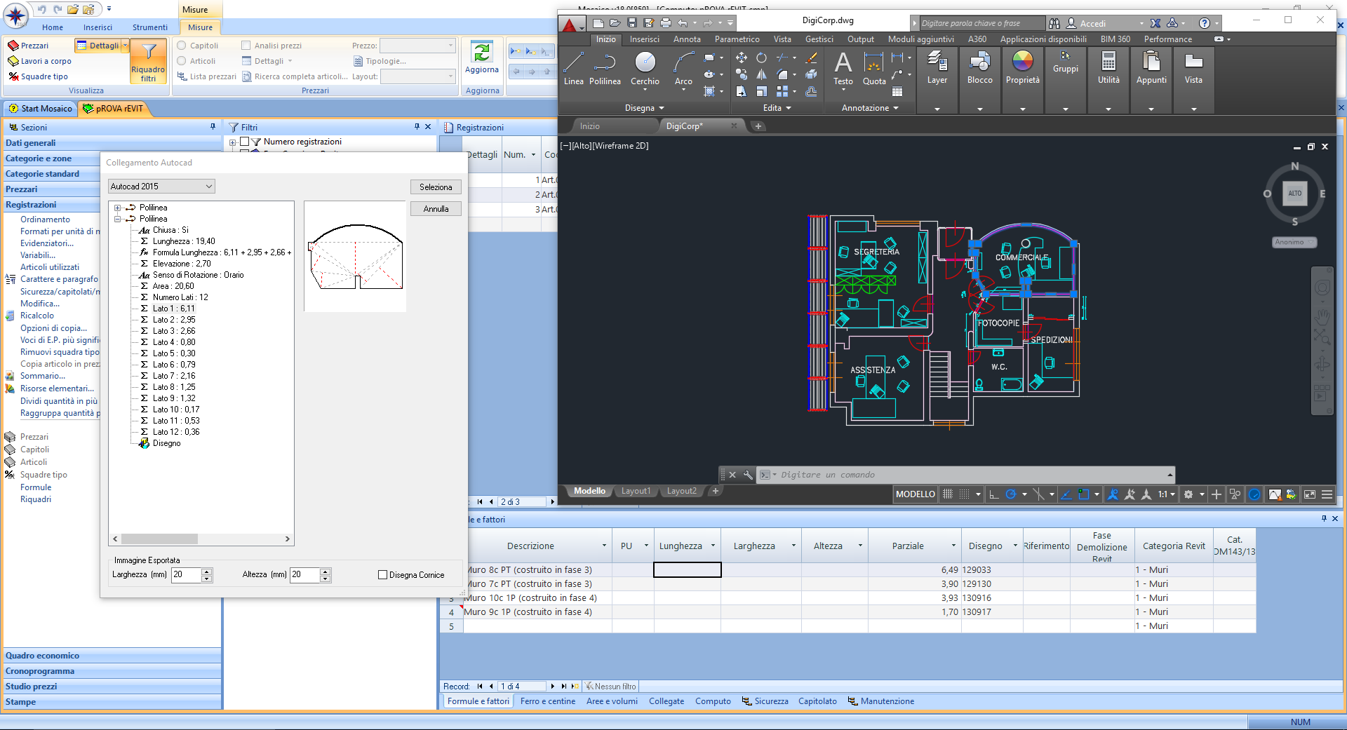 5. Entra nella casella Sezioni> Archivi e apri il database delle informazioni che vuoi associare agli oggetti nella cartella "Database Digi Corp"(Prezzari per gli elenchi prezzi, database di sicurezza per processare analisi dei rischi ecc...);