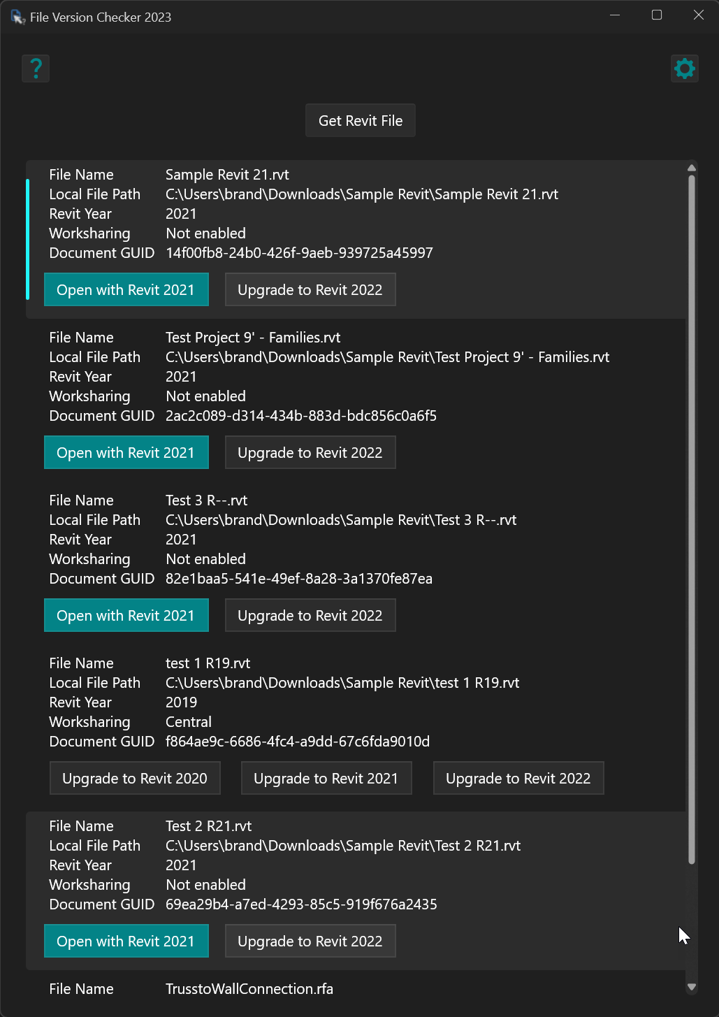 In comes File Version Checker. This is a lightweight application that can be set as the default application for Revit files. When the user opens the Revit file through their system’s file explorer, the File Version Checker will read the basic file information of the file to determine exactly what version of Revit it was saved in. It will also read the user’s Revit install location to determine the Revit versions available on the user’s system. If the user has the same version of Revit that the file has been saved in, the application will present the user with a convenient “open” button. If the user has newer versions of Revit installed, they will also be given the opportunity to upgrade the file to the Revit version of their choice.