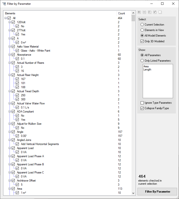 Really helpful in past verions of Revit, but having issues with Pre-Filter and Selection Expander in Revit 2022. Additonally, Pre Filter would be great to add "Curtain Wall Grids" to the check list.