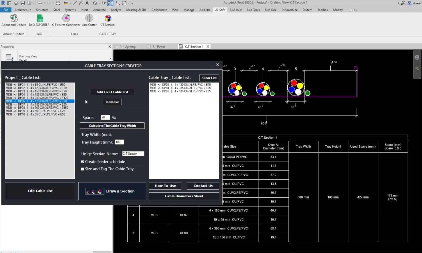 'Cable Tray Sections Creator' is an innovative Add-in designed for Autodesk® Revit® software, aimed at swiftly generating cable tray sections along with integrated cable schedules. This tool streamlines the process of creating cable tray layouts, ensuring efficiency and accuracy in electrical design workflows. With its intuitive interface and robust functionality, users can seamlessly produce detailed cable tray sections and accompanying schedules, expediting the design process while maintaining precision. Experience the quick and accurate generation of cable tray sections and feeder cable schedules with this groundbreaking Add-in.