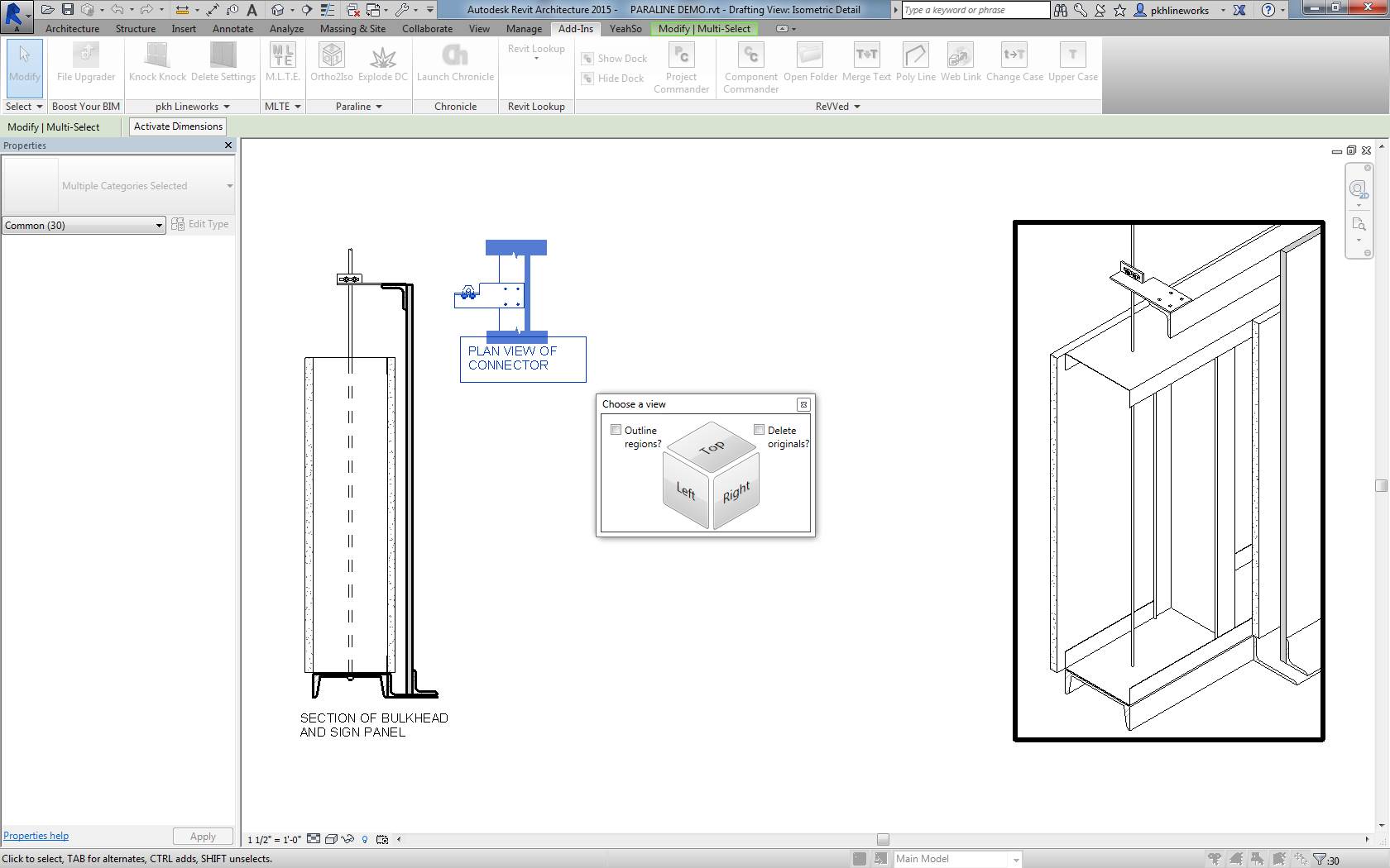 Paraline is an Autodesk® Revit® program extension that allows you to convert the detail elements from standard orthographic drawings like plans and elevations into 3D isometric drawings.
