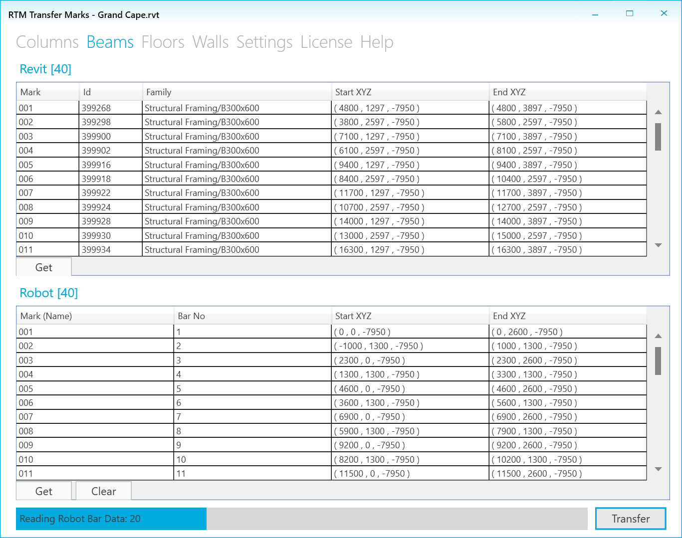 This application enables users to read and transfer the mark values of Revit elements directly to their corresponding elements in Robot with ease.