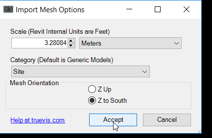 Meshes aren't scalable in Revit If you try to import a mesh made with Autodesk ReMake using the standard scaling option, its about the size of one billion units. If you try to change this during import, it pulls the whole thing to shreds. Quite frustrating.