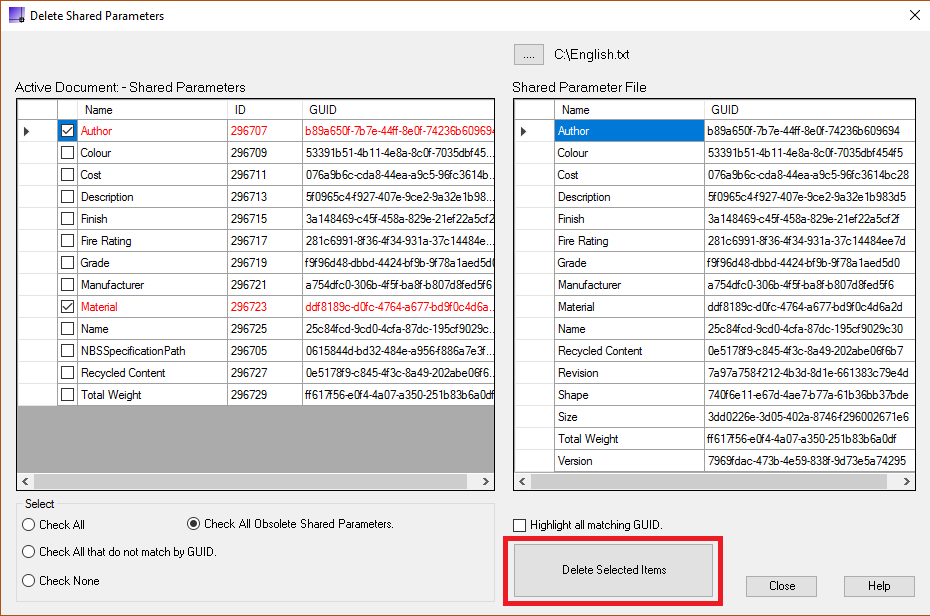 You can also open your shared parameters file in the App to compare it against the active document therefore facilitating easy identification of parameters to add, potentially save hours of work.