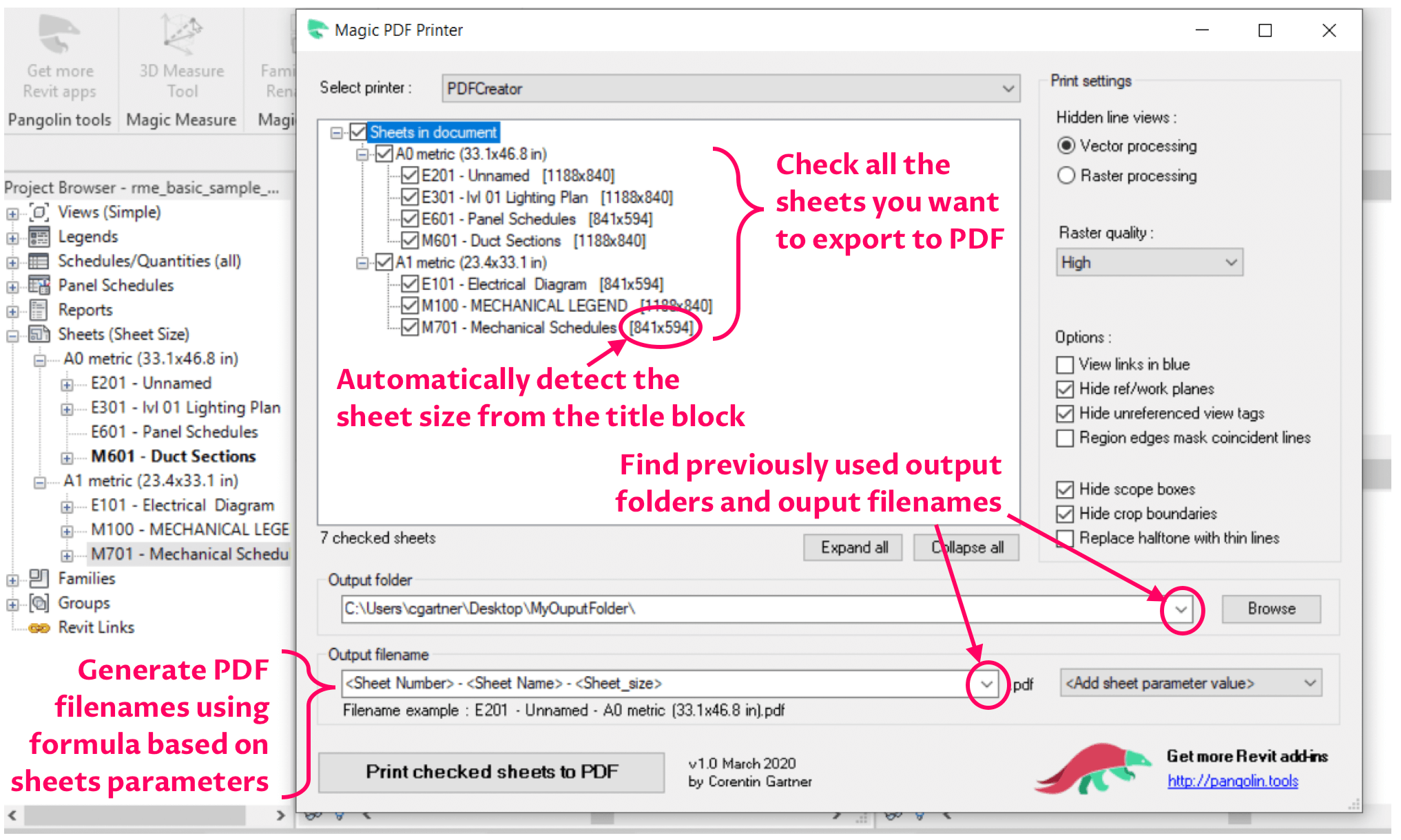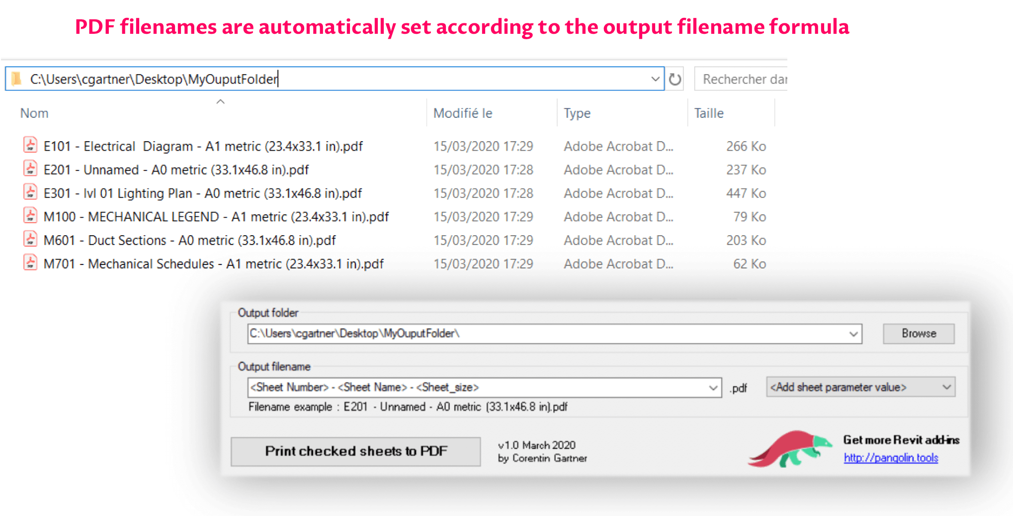 Also, you can automatically name your PDF files using custom sheet parameters.