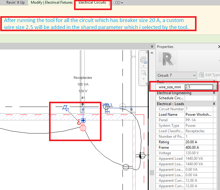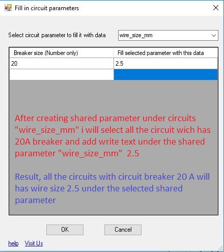 This tool is designed to fill in the circuits parameters (like wire size shared parameters or any other parameter) with reference to the circuit breaker size.