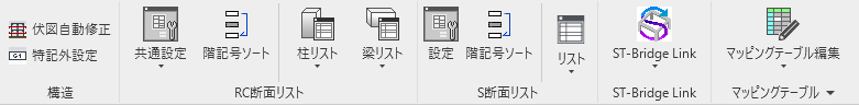 RC断面リスト作成,S断面リスト作成,ST-Bridge Linkを利用される際,必要に応じて構造マッピングテーブルを編集する機能です。