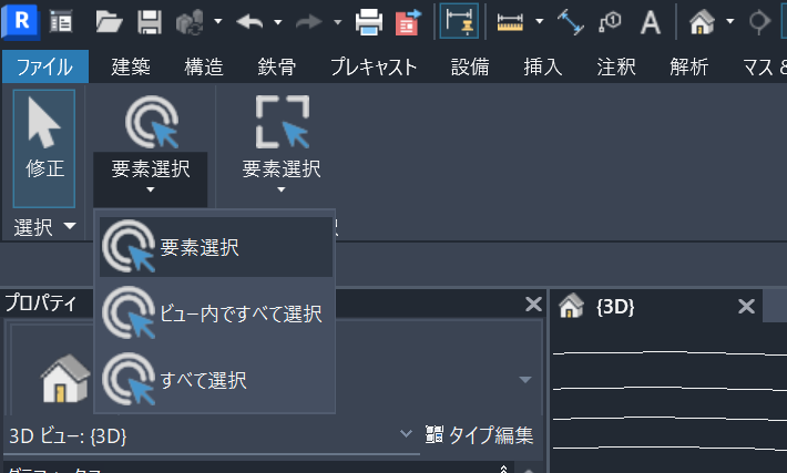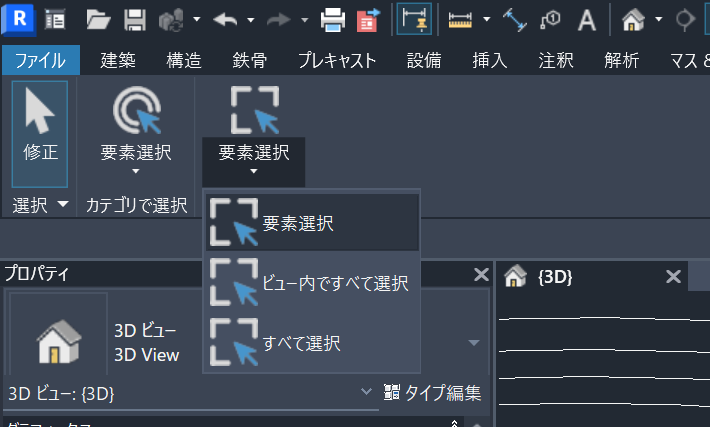 - アクティブビュー内で該当カテゴリ要素を自動で全選択