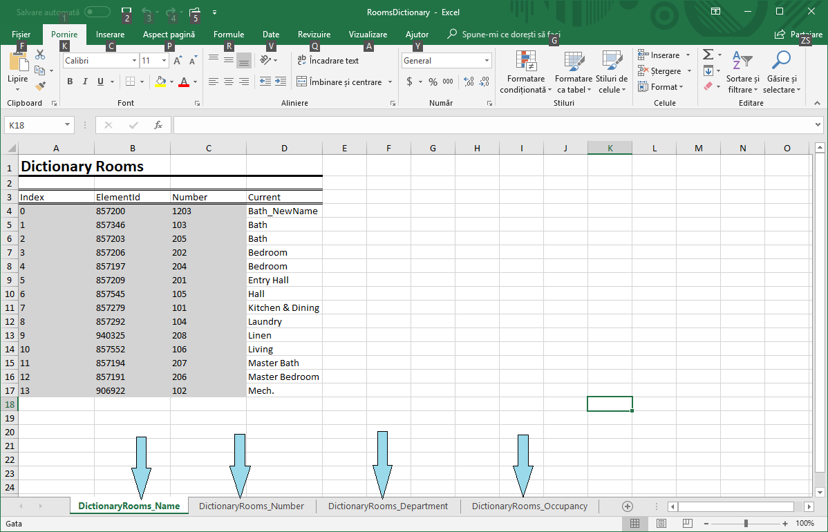 - Change names of Materials, Areas, DesignOptions, Groups, Parts