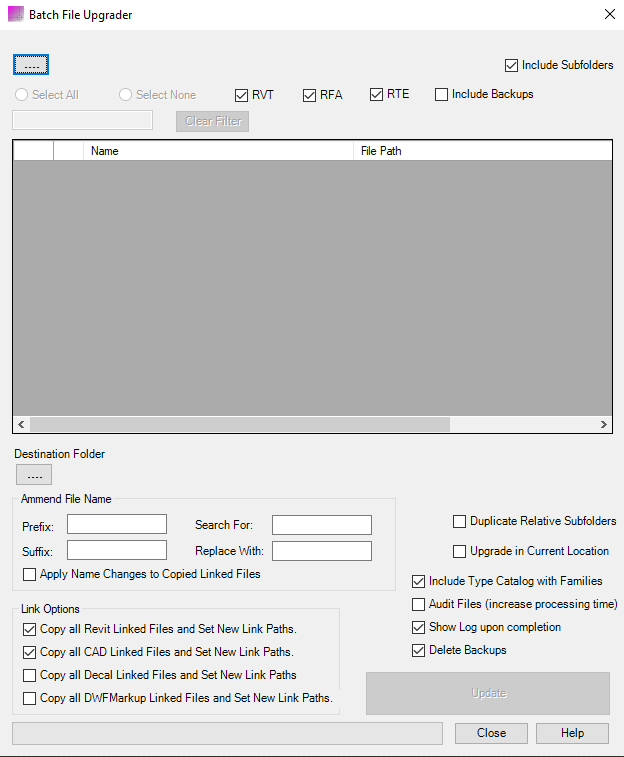 Using this app, you can upgrade multiple Autodesk® Revit® Projects (*.rvt), Templates (*.rte) or Families (*.rfa) to the most current version. Excludes Workshared Projects.