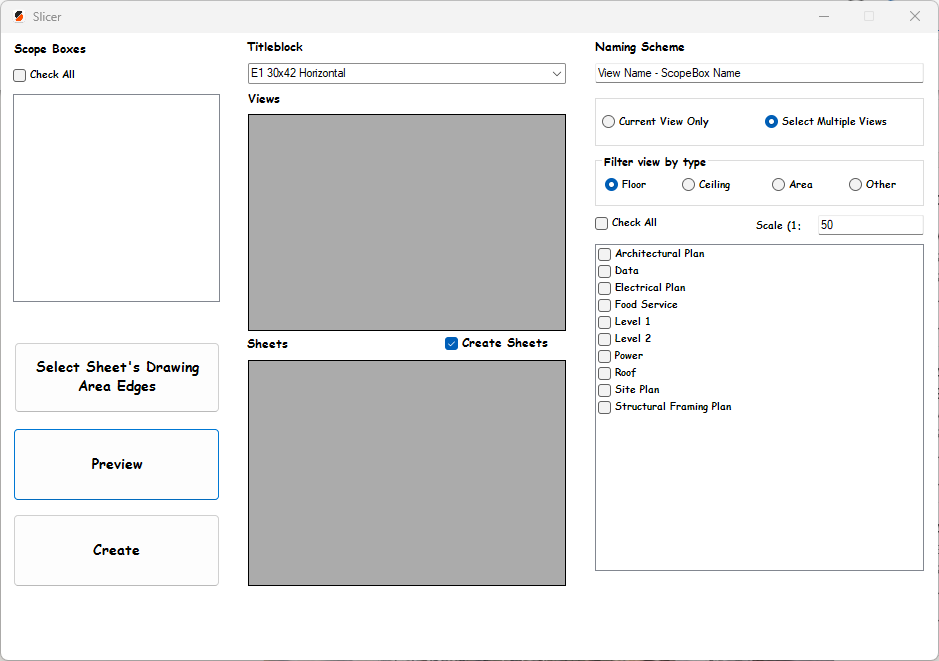 - Automation: Automates the process of creating views from scope boxes and placing them on sheets, reducing manual effort.