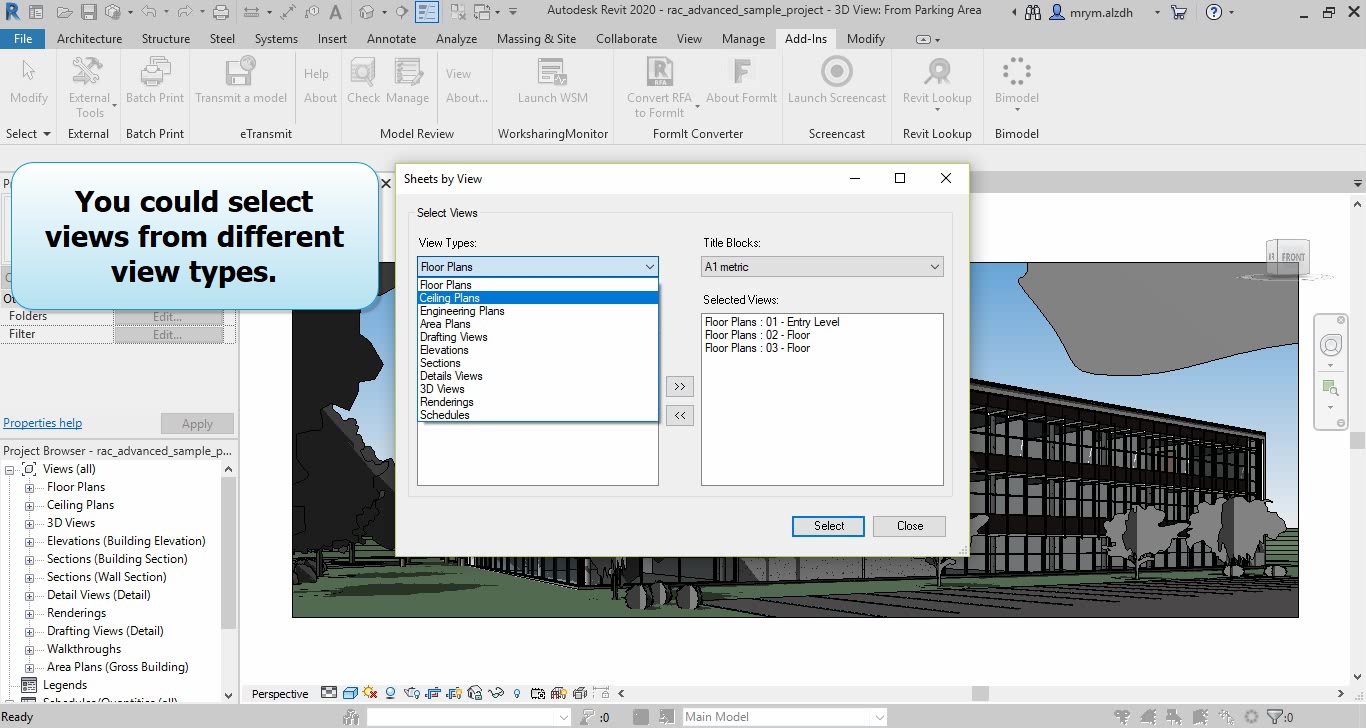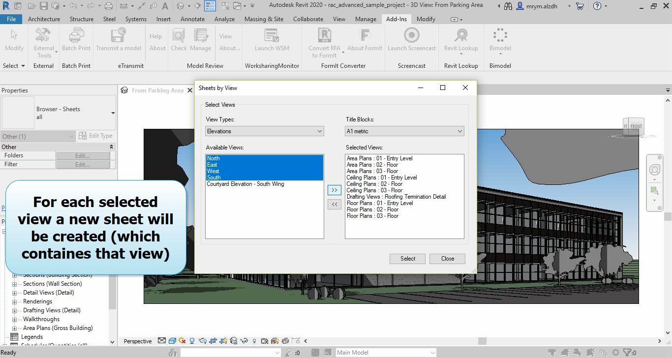 This add-in will help you to select your desired views in an Autodesk® Revit® file to create a sheet for each of them simultaneously.