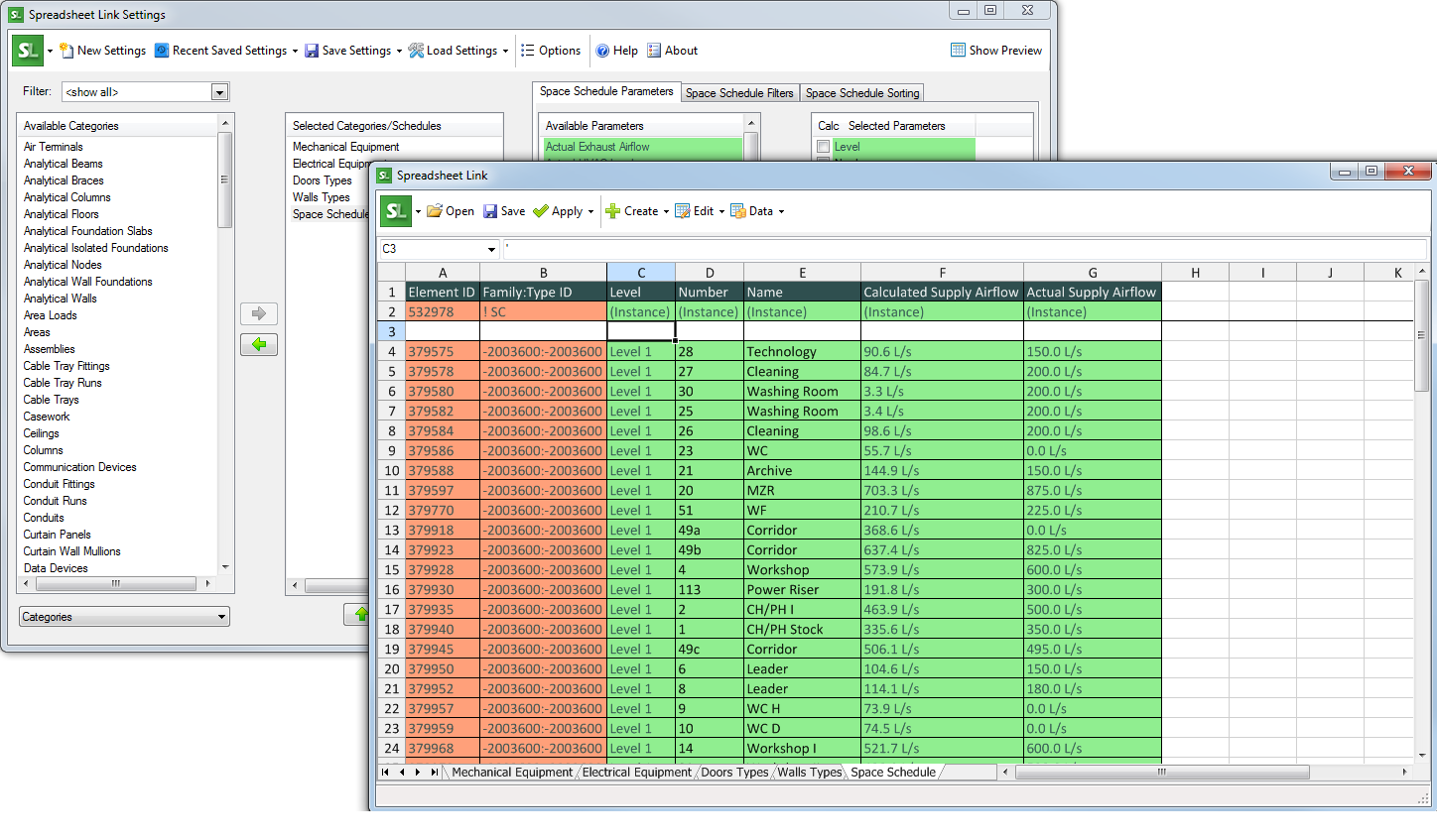 This powerful tool exports data from Revit to a spreadsheet where the data can be easily edited and then loaded back into Revit. Powerful embedded spreadsheet functions can be used without requiring external spreadsheet software.