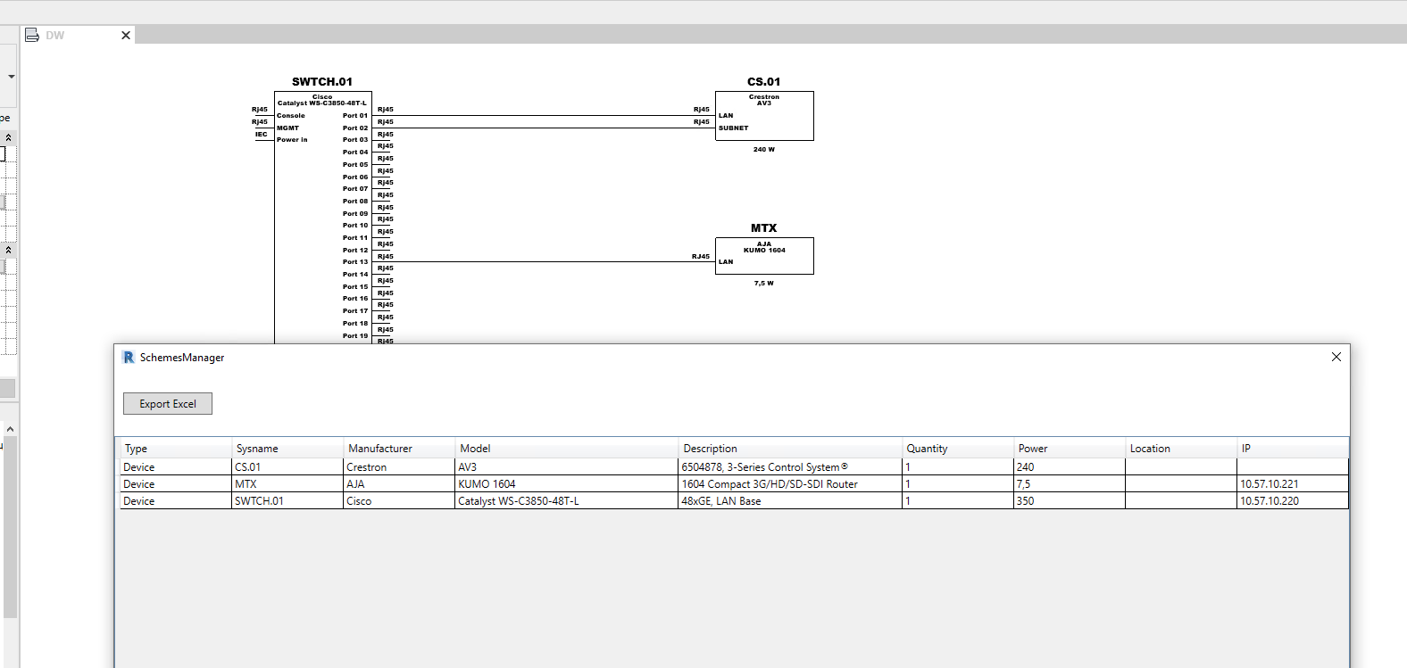 This plugin can help you to get a graphical representation of a device on drawings as a 2D block. The block contains information about input and output connectors, power consumption, and more.