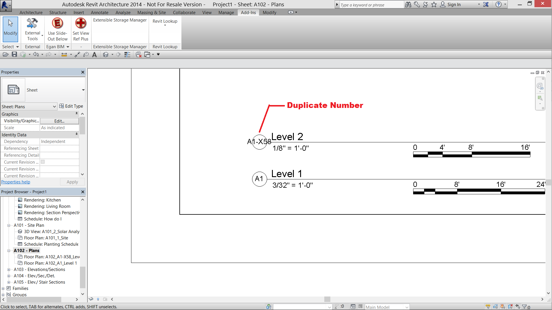 The app provides a sheet parameter, “Skip Egan Sheet Matrix,” which, if checked, will disable the app for that sheet. This is useful for any sheet where renumbering of details may not be desired, like 3D views, door details, and title sheets. The app's default is to process all sheets.
