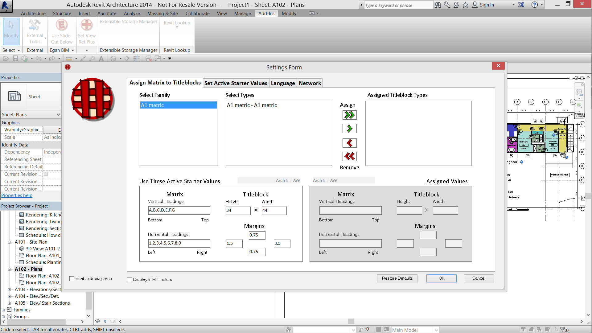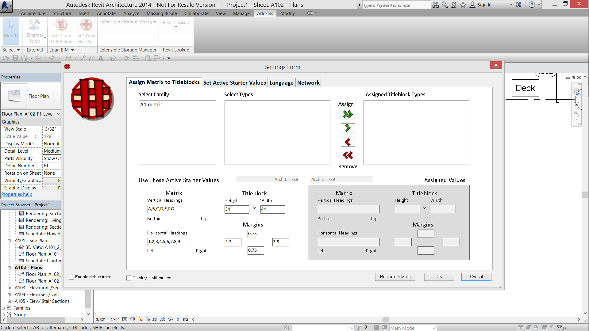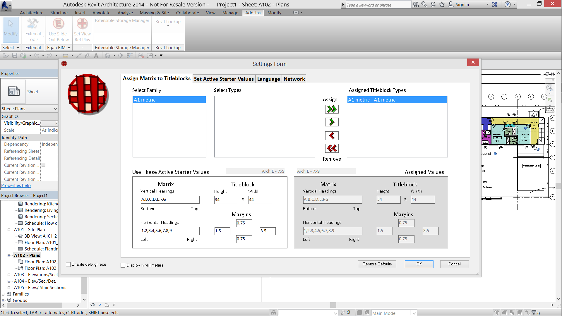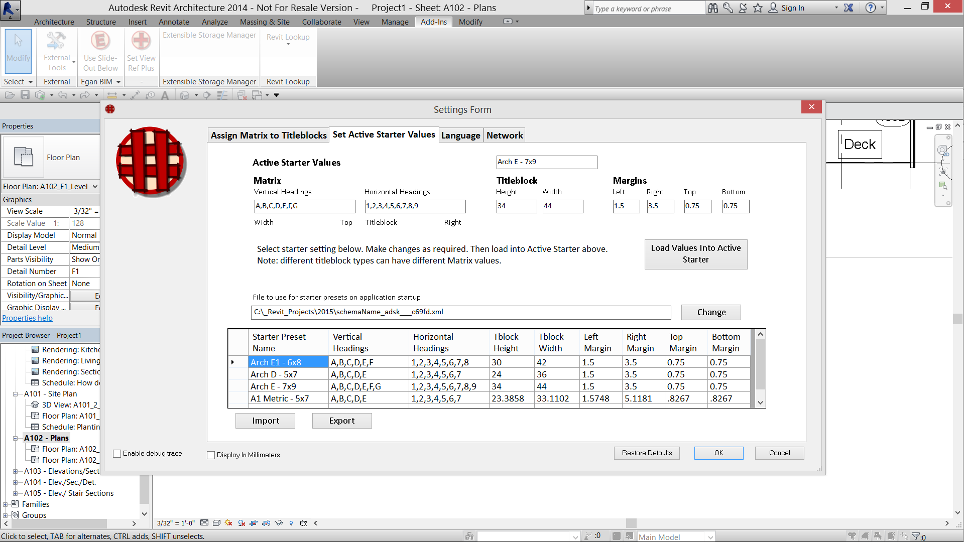 A sample preset is provided on the Settings Form and additional matrix possibilities are provided on on the Egan BIM Resources website: https://eganbimresources.com/sheet-matrix-help.html.