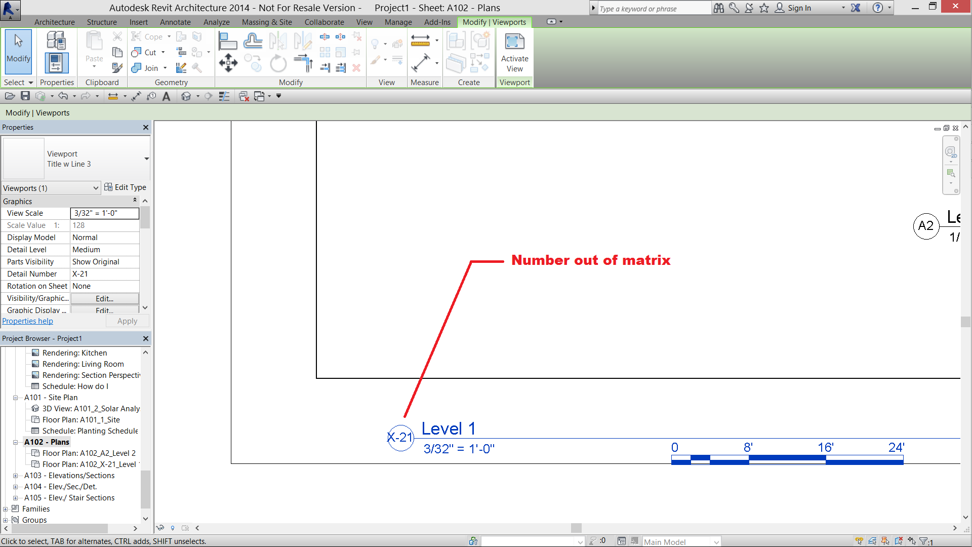 If a detail is placed or moved outside of the matrix, the detail will not be given a module number but will be numbered “X-##,” where “##” is a random number, to indicate that the detail is outside of the matrix. Other than this convention, the user is responsible for recognizing and correcting details that are outside of the matrix.