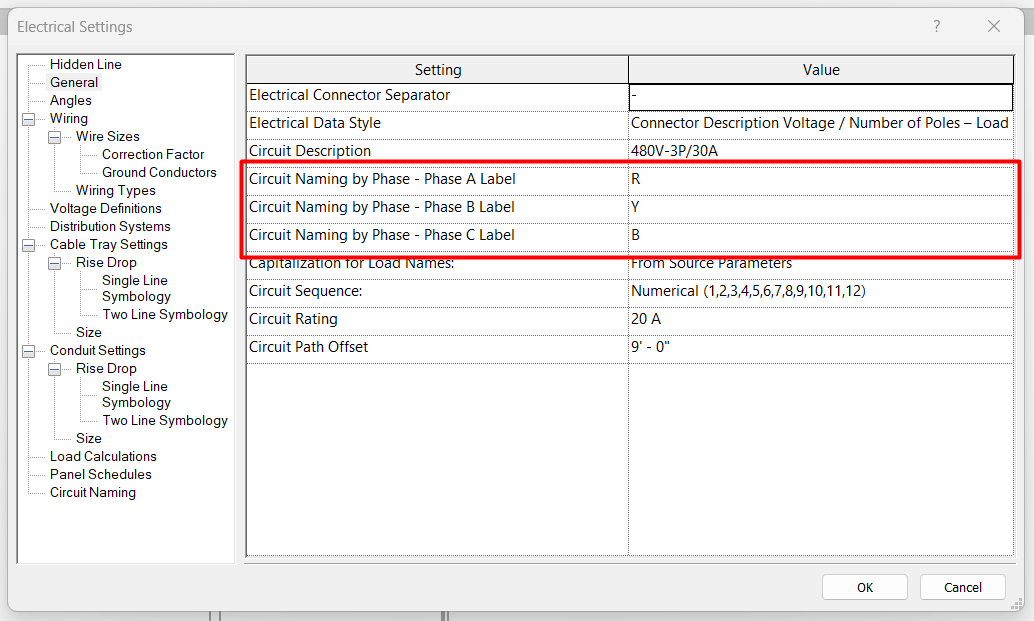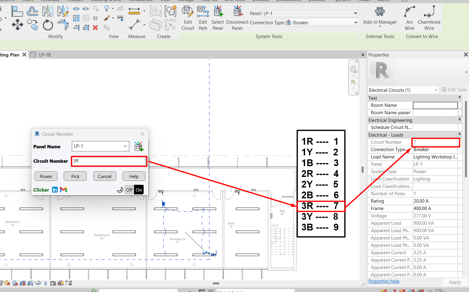 Manually power and assign an electrical circuit number by entering a numerical value or using a phasing format (e.g., RYB, ABC, or another format).
