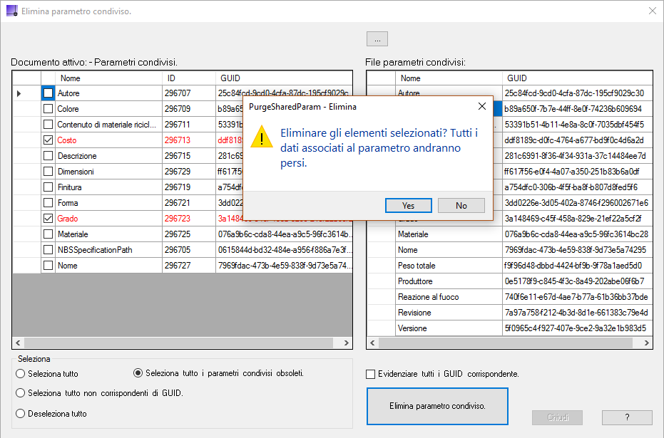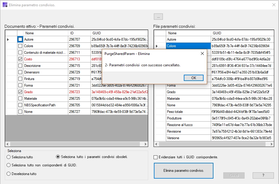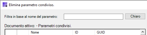 Questa applicazione consente di rimuovere il parametro condiviso in un documento attivo, consentendo di aggiungere il parametro appena denominato.