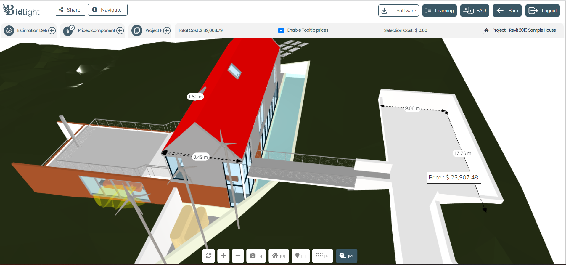 Delivers instant quantities of the 3D model as well as matches those quantities to a cost database. Very easy to use and share with the team.