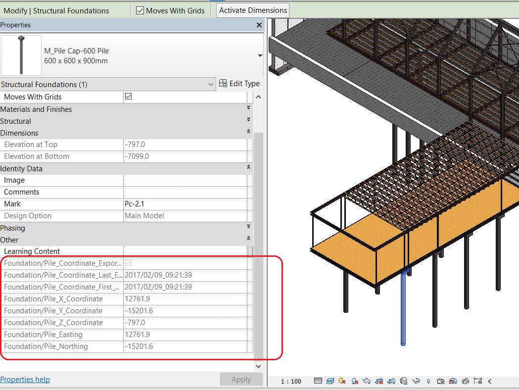 Pile Coordinate App extends Autodesk® Revit® capability to schedule the X, Y, Z and Easting and Northing Coordinates from Structural Column and Structural Foundation/Pile.