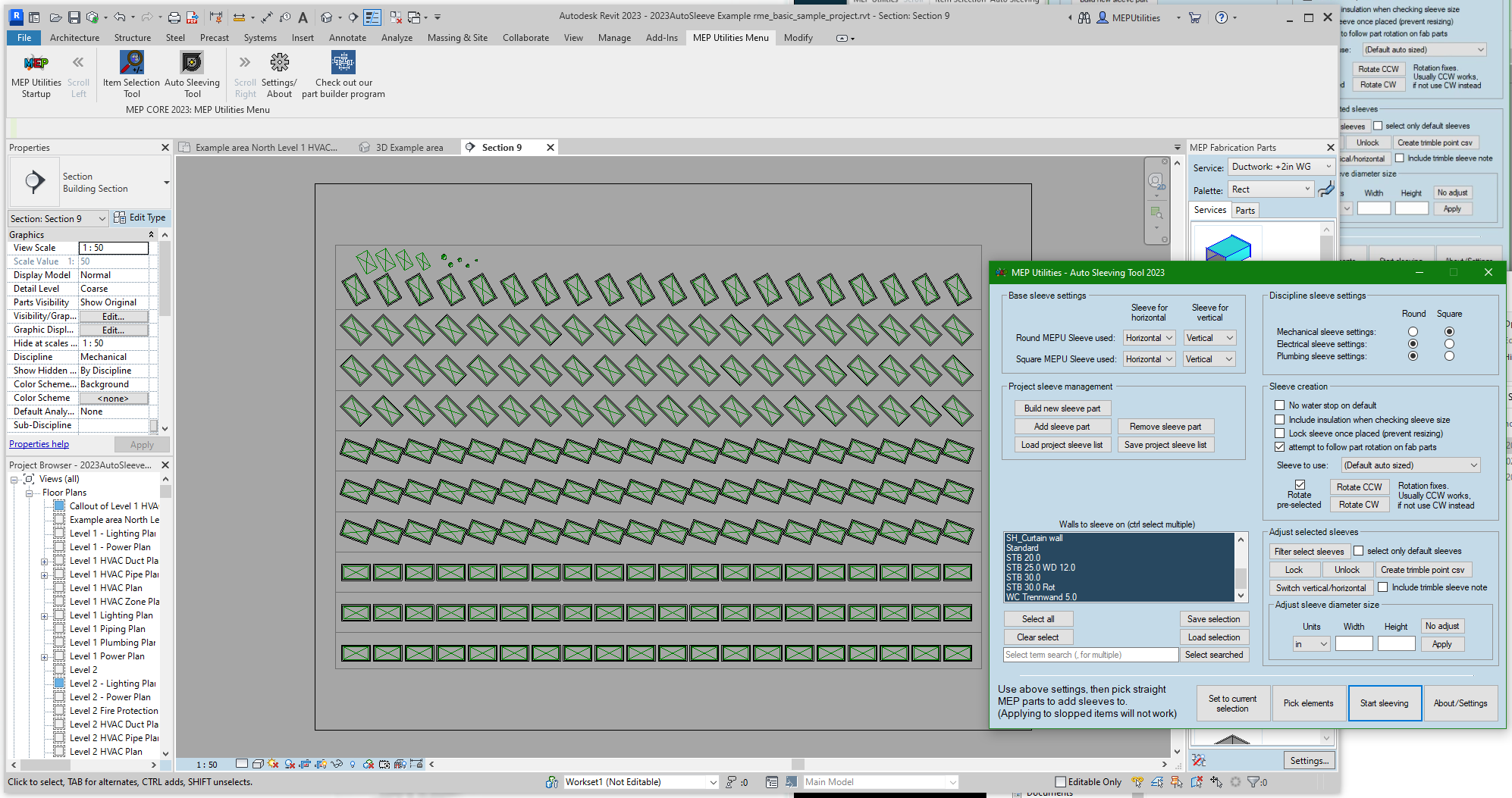 Autodesk® Revit® add-in tool that automatically places sleeves at the wall and straight part intersects with walls and floors. Allows fab and Revit parts, and includes a trimble point export.