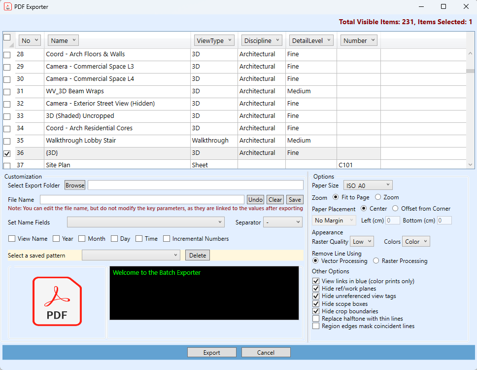 - Customizable Selection: Choose specific views and sheets or export entire sets for greater flexibility.
