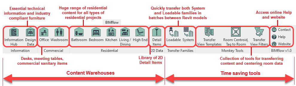 Transfer Families Tools: Use our transfer tools to instantly transfer content from the warehouses into your models. These tools can transfer multiple families in one process for both loadable and system family types.