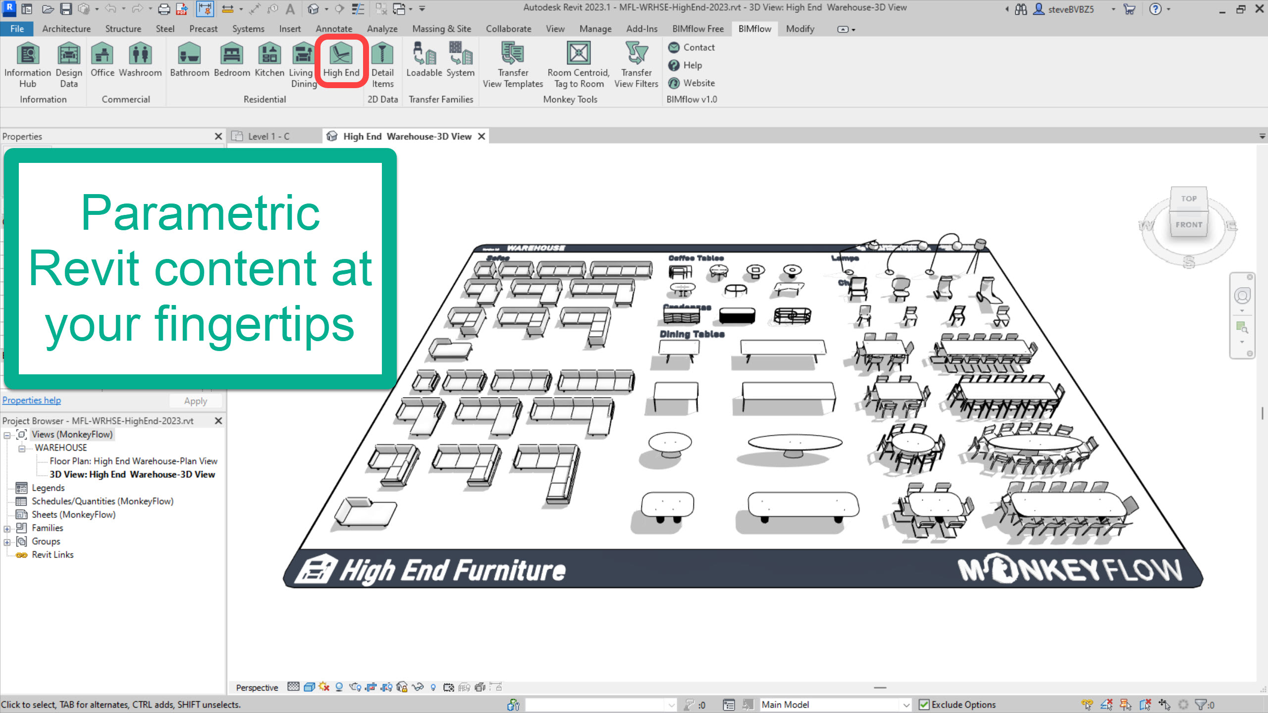 Residential Warehouses: Includes Bathroom, Bedroom, Kitchen, Living/Dining and High-End Warehouse files. These contain a vast amount of Revit families such as WC’s, sinks, taps, baths, showers, beds, cupboards, kitchen units, worktops, appliances, sofas, dining tables, lighting and much more. All content is lightweight and will not bloat your models.