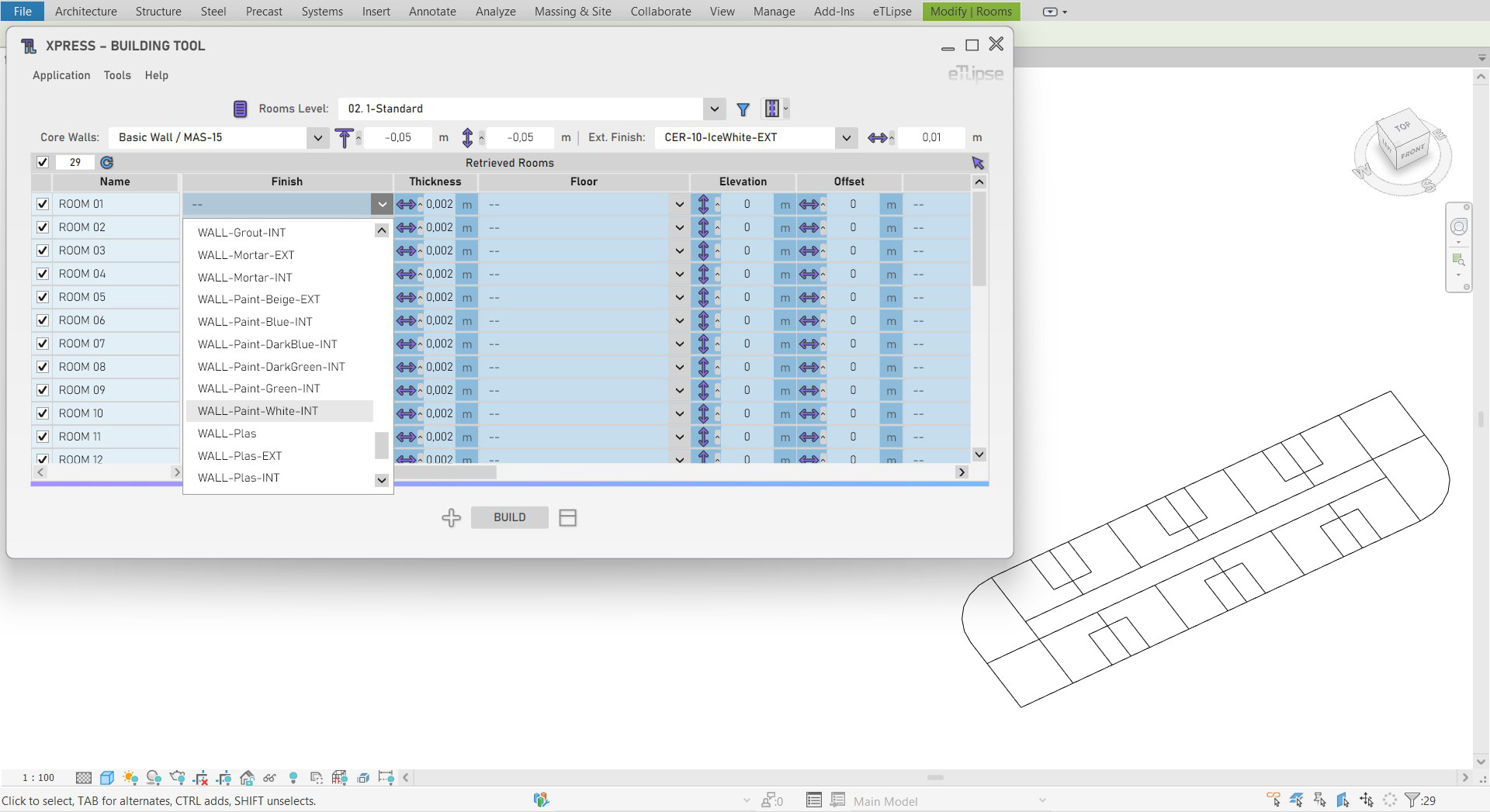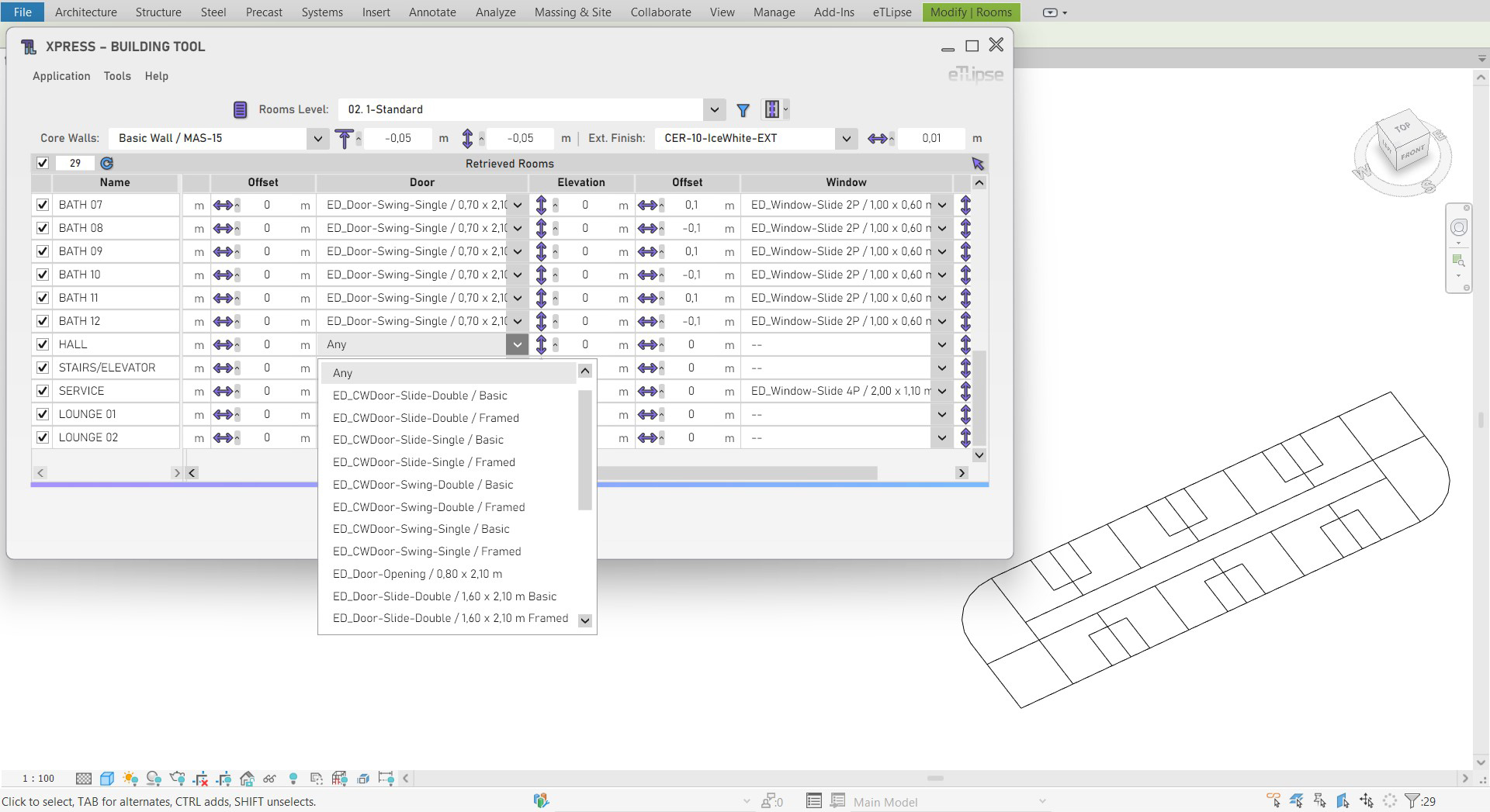 Automatic building of Architecture models out of rooms, separation lines and user preferences. Basically, it is a way to run a streamlined single execution of several commands of the TL Elements application. eTLipse Elements Xpress (TL Xpress) is also part of TL Elements, our automation suite for Architecture modelling in Revit. Take a look here: https://www.etlipse.com/tlelements.