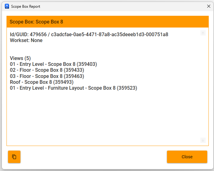 It will quickly show you how many Scope Boxes there are, which ones are not used and thereby safe to delete, and which are in use by which views, levels, grids, or reference planes - providing an overview of just where you have used which Scope Box.