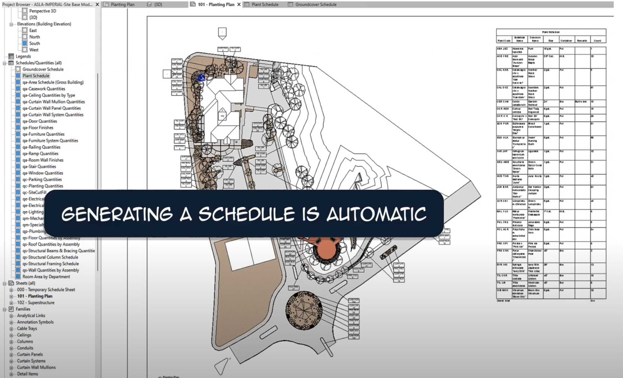 The Planting F/X for Revit Plugin allows you to achieve automatic quantities, error checking, instant schedules, and fast revisions – all in Revit! If you have a Planting F/X or Irrigation F/X license, the Planting F/X for Revit Plugin is included. Design in CAD and bring your plan into 3D Revit, or design directly in Revit. Features include: