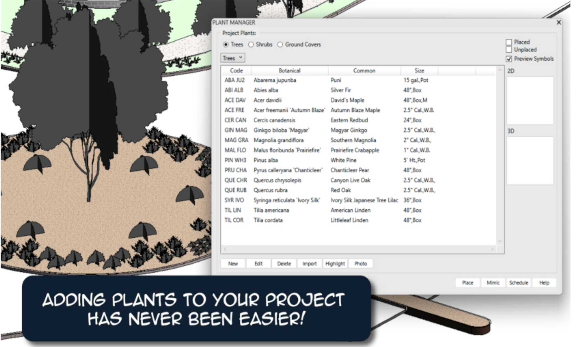 Add plants to your Revit project directly from our giant database of more than 48,000 plants.
