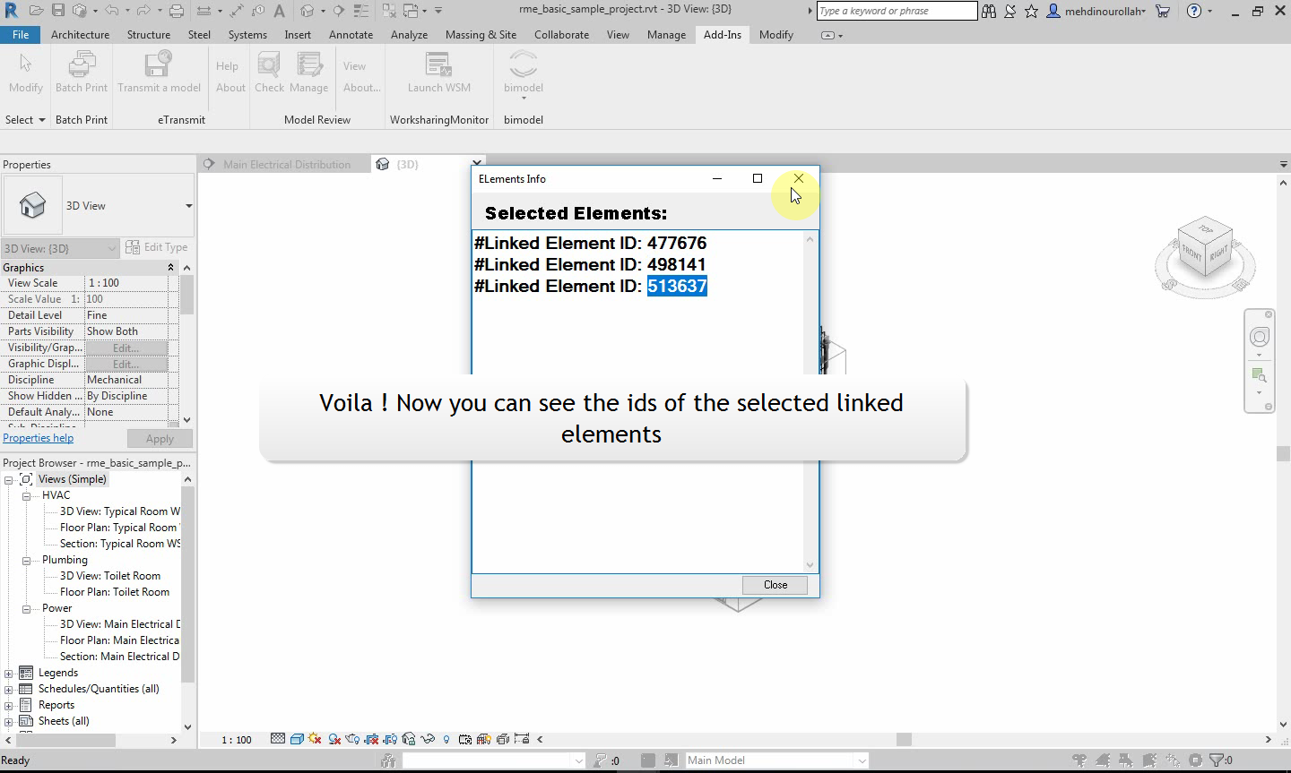 This add-in will help you find the ID of linked elements. Then you can send the ID for someone to check the problem, for example, clashing, position, dimension.