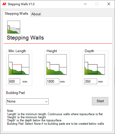 Stepping Walls is a plug-in that can be used to step selected walls along a topo surface. This tool can be used to create compound walls along the toposurface quickly and easily.