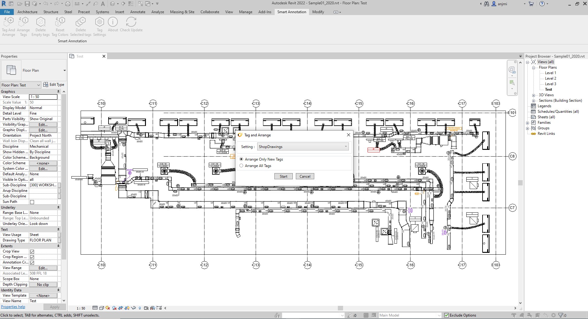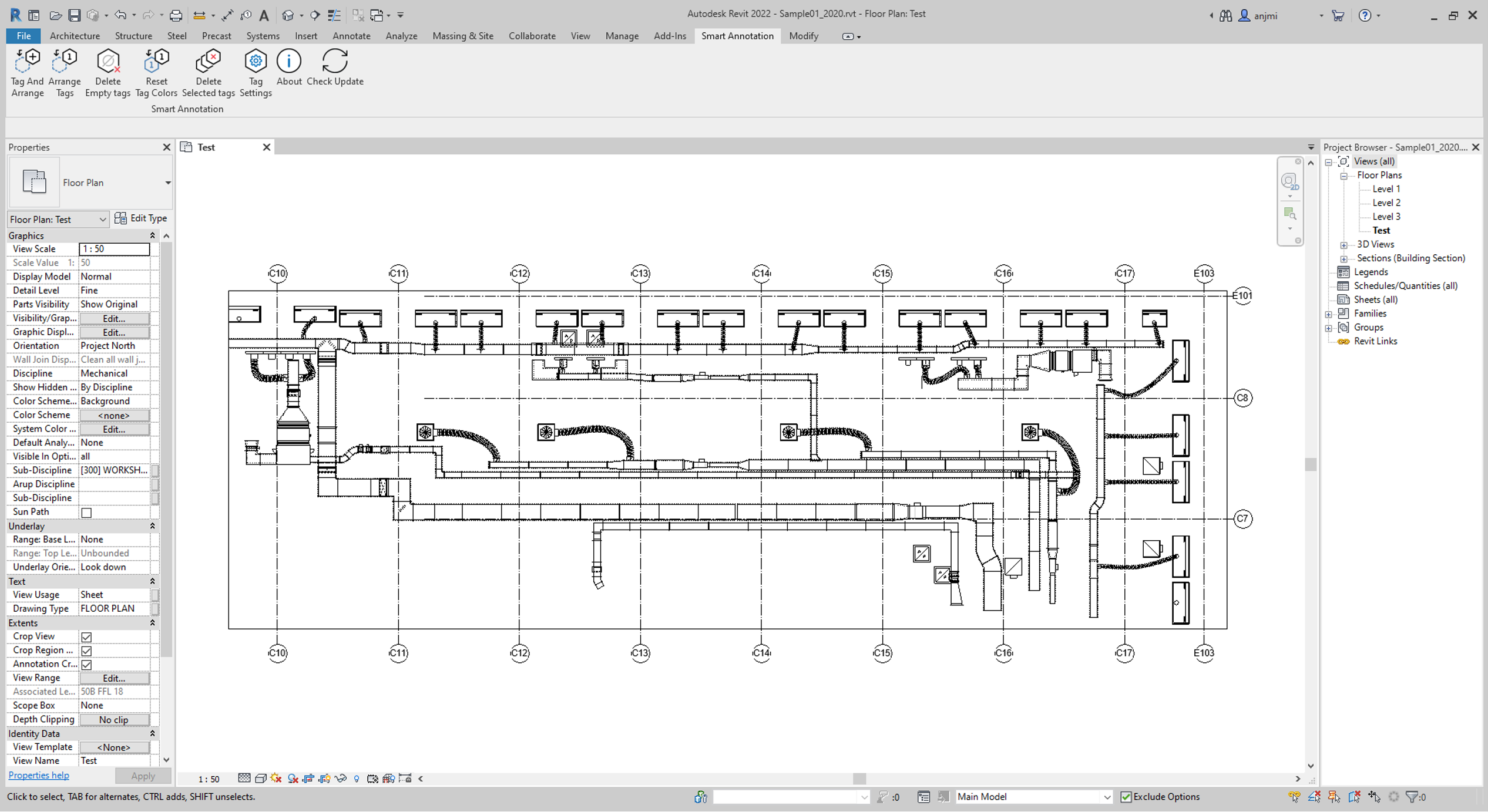 Smart Annotation is an AI-powered Autodesk® Revit® add-in to automate annotating and documentation process of the drawings. The AI algorithm behind the app places tags in their preferred positions and aligns them with other tags without overlapping with other elements in the document.