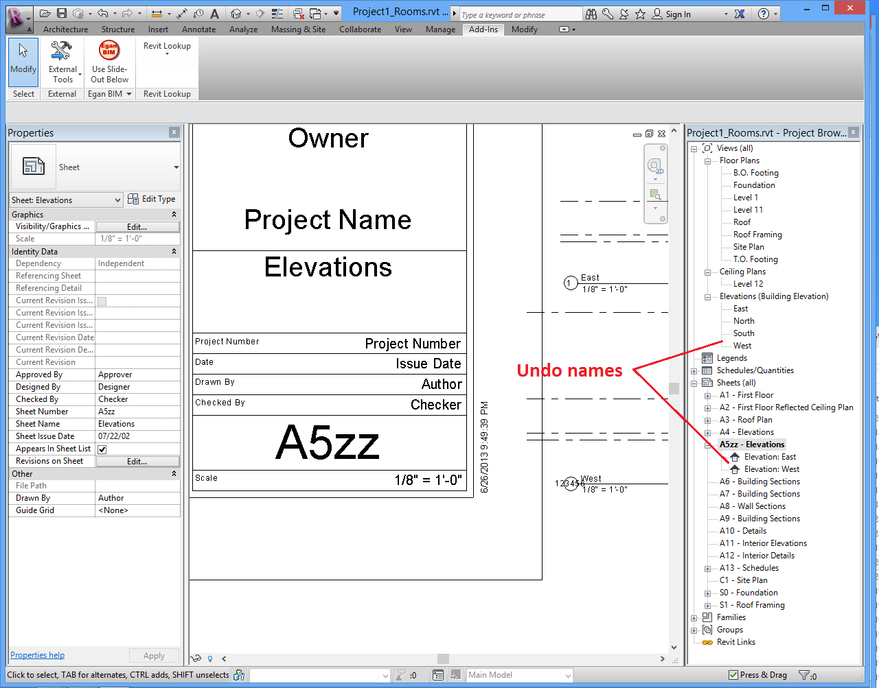 Egan View Name By Sheet Number