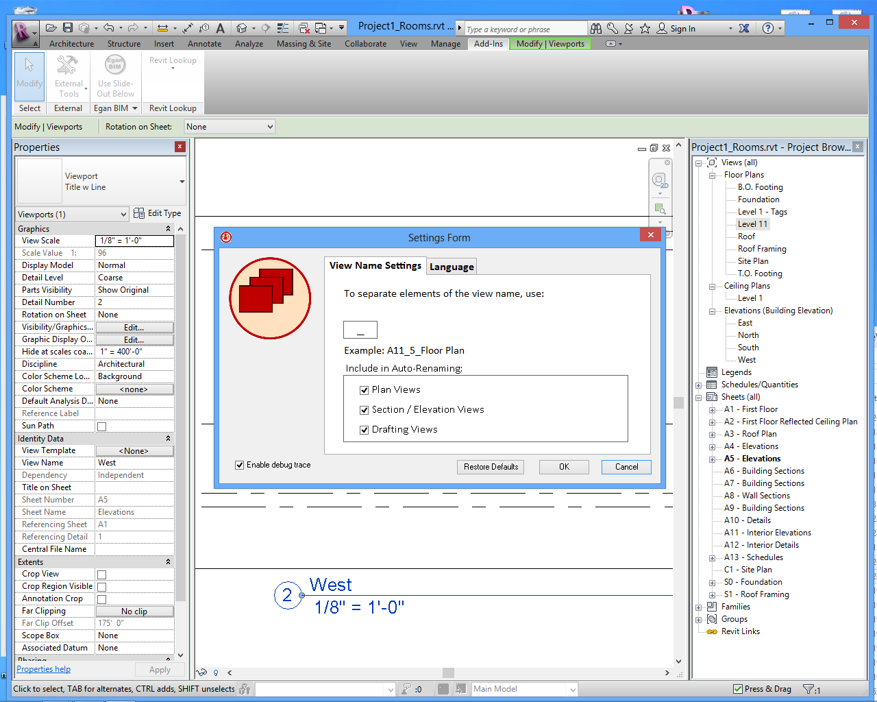 When views are added to a sheet they are automatically renamed in the pattern “Sheet Number” “Detail Number” and “Title on Sheet,” for example, “A1.2_3_Roof Detail.” This app uses the Title on Sheet but does not automatically change it, to have as minimal impact on your current workflow as possible.