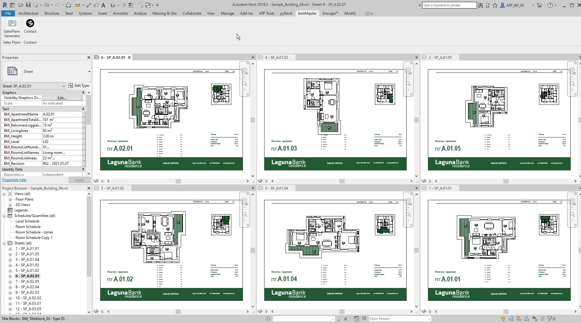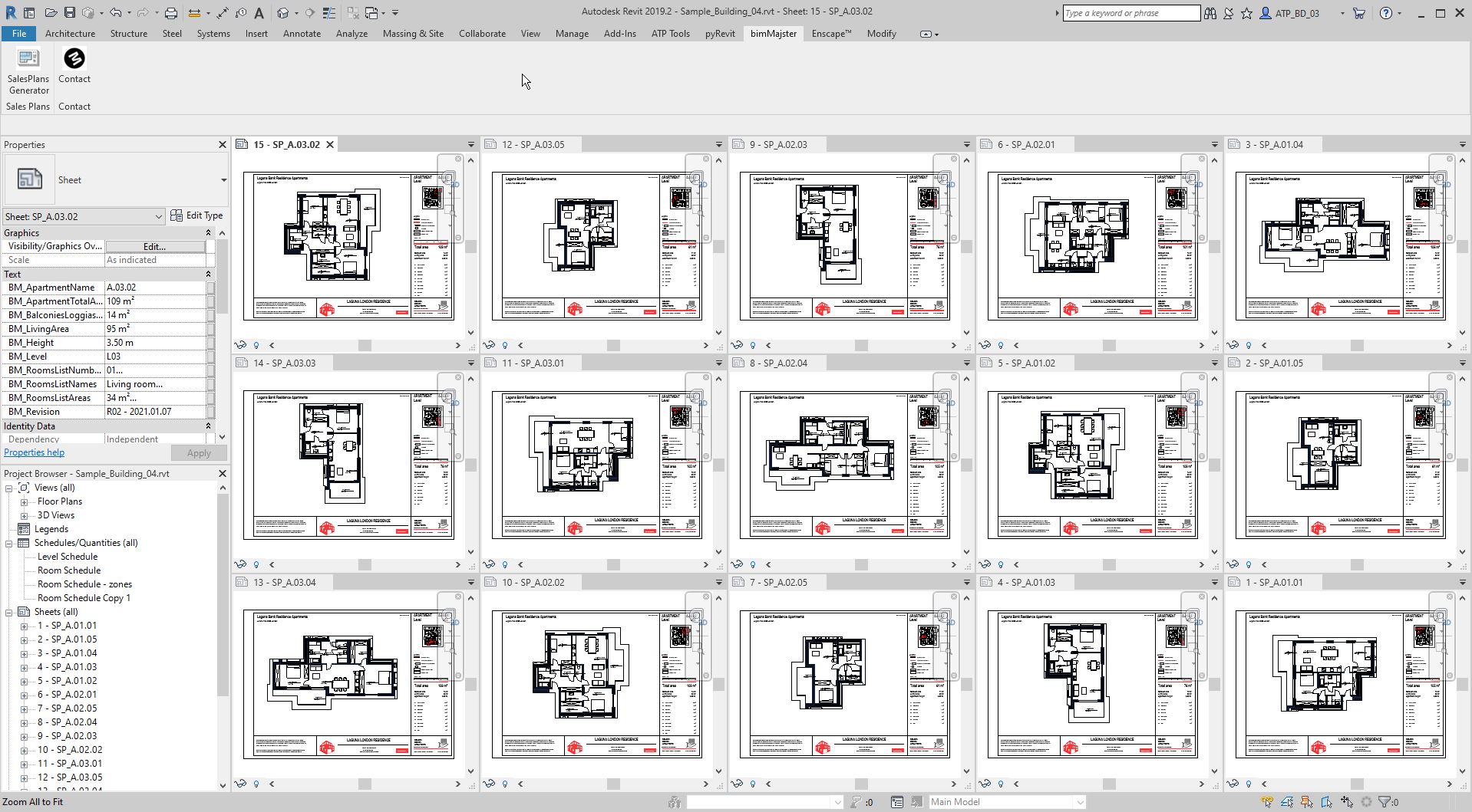 The program will create Autodesk® Revit® Sheets, populate all the information about the apartments, create the main apartment view and the overview plan.